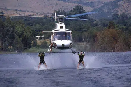 Dominique participe également à des shows nautiques atypiques où bateaux, skis nautiques, hélicoptères, ULM et deltaplanes offrent des acrobaties encore jamais vues jusque-là !