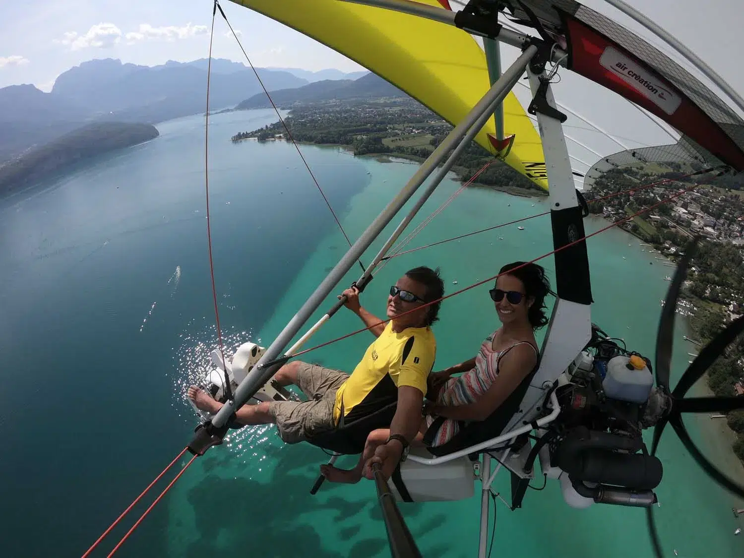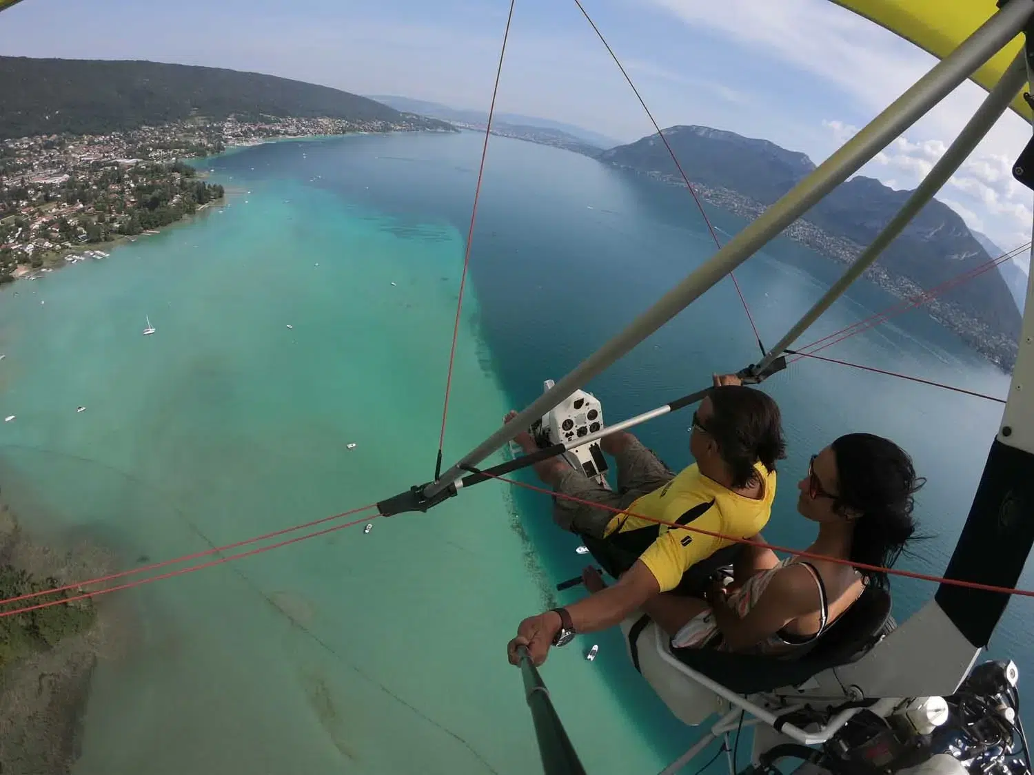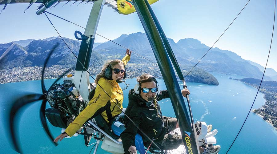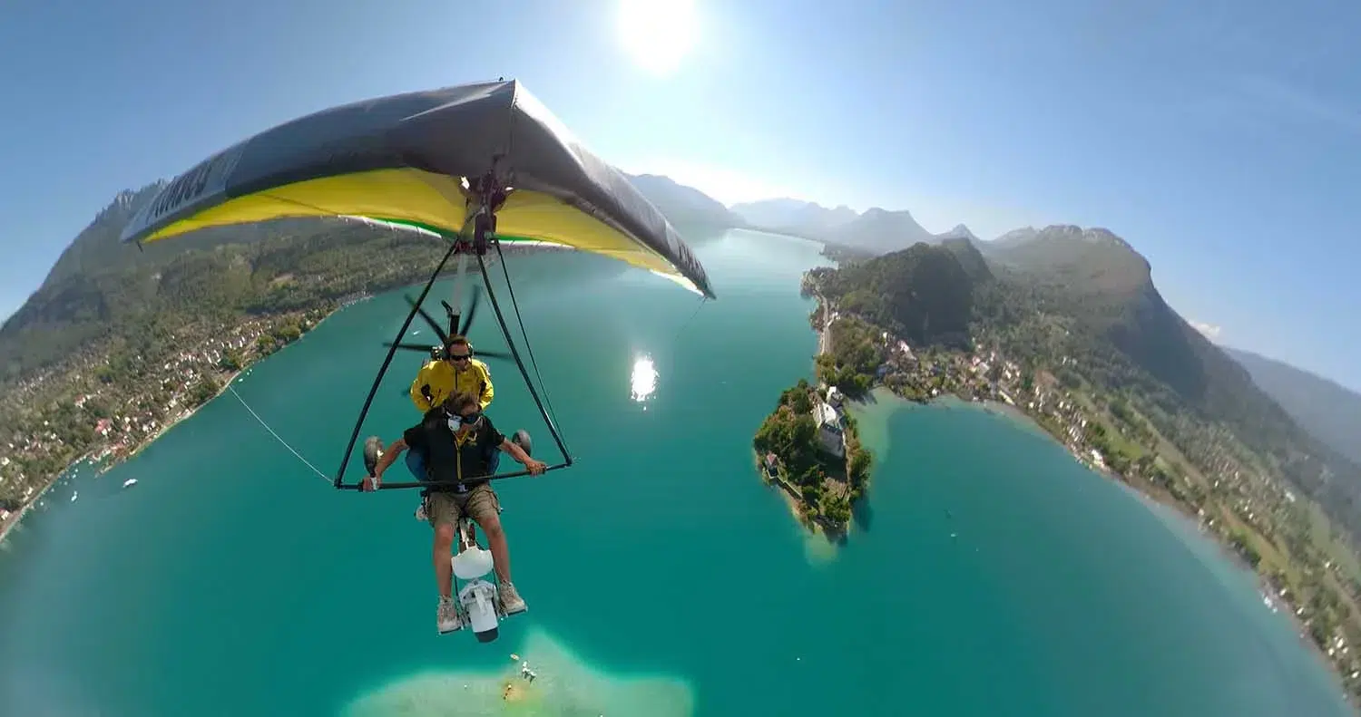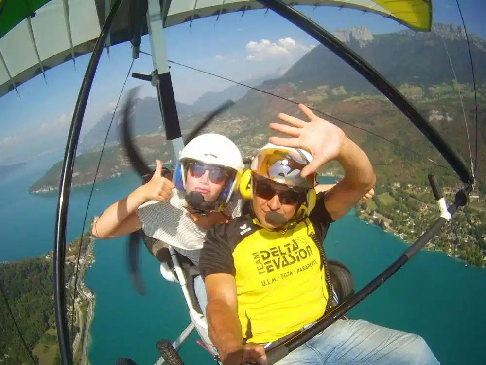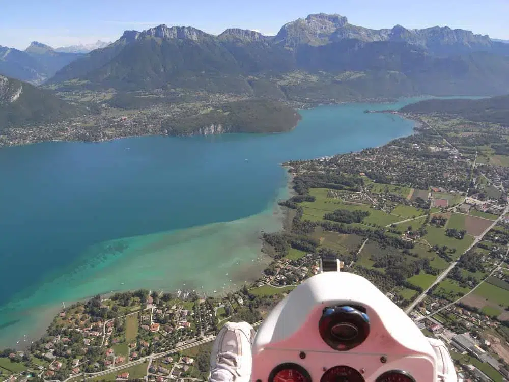 Imaginez-vous confortablement installé(e) dans l’ULM avec un défilé de paysages extraordinaires. La presqu’île et le château de Duingt, Saint-Jorioz et son lagon, Talloires, La Forclaz et ses ailes volantes… Et votre moniteur expérimenté, assis à vos côtés, vous présente cet univers magique !